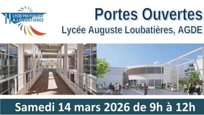Portes Ouvertes, Lycée Auguste Loubatières, Samedi 14 mars 2026 de 9h à 12H