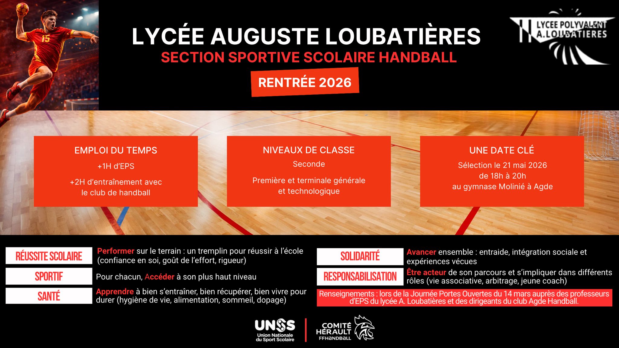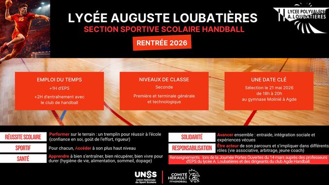 La section sportive handball ouvre dès la rentrée prochaine au Lycée Auguste Loubatières