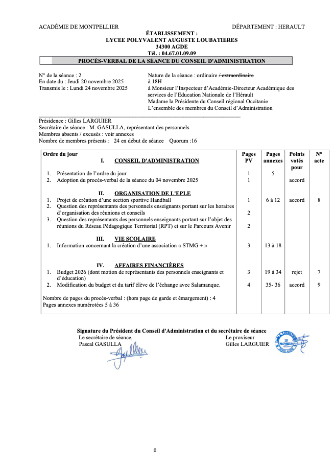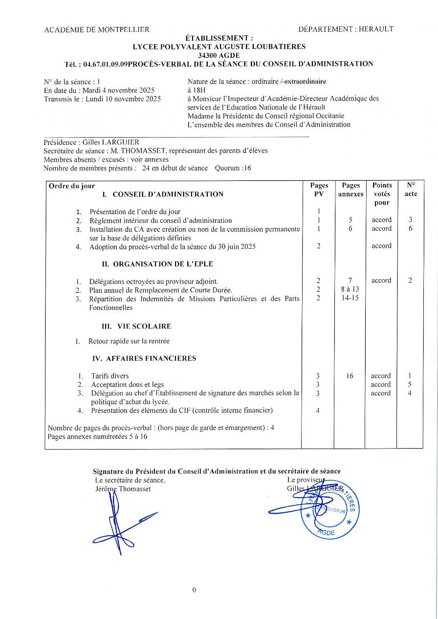 C.A. Procès verbaux des séances